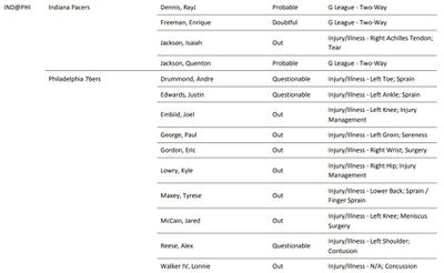 The fact of the matter is just that the Sixers and the Pacers are on different trajectories this season. Nothing shows that better than the injury report comparison.