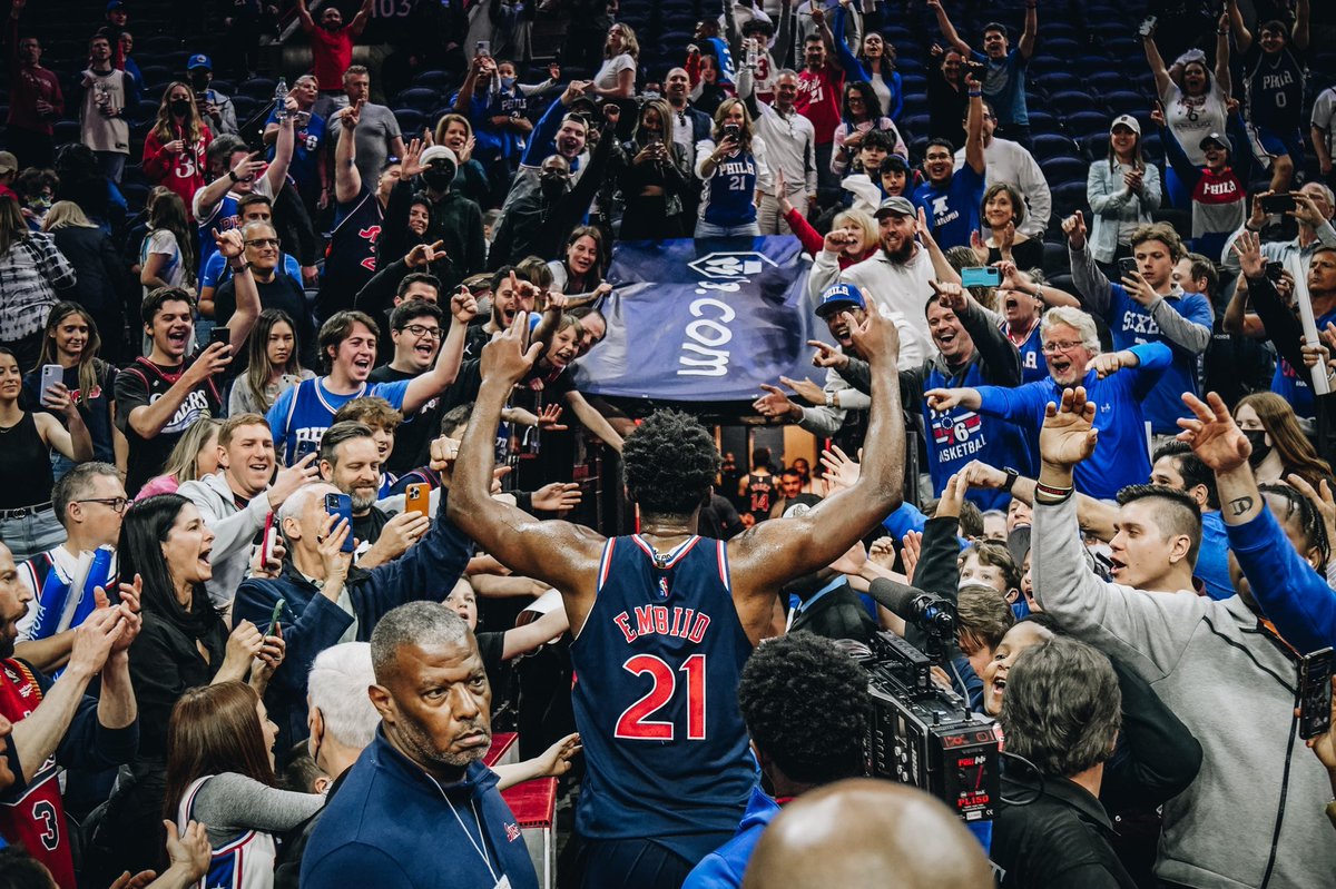 Embiid, when asked what he’s learned he has to do to maintain his body over the course of a long season, says with a laugh “Shoot a bunch of jumpers”. – 10:32 PM