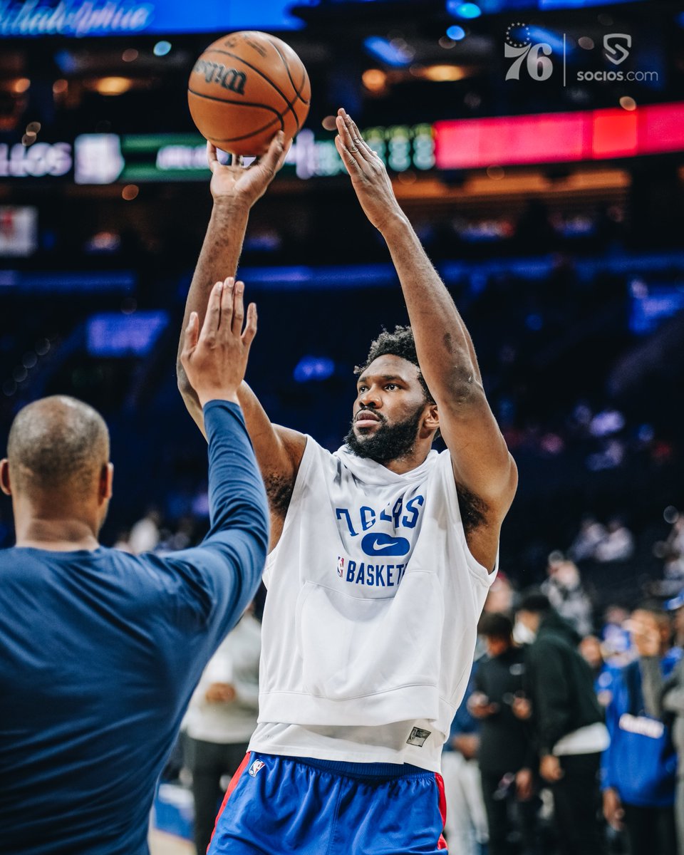 Joel Embiid is out on the court for his usual pregame warmup. He’s questionable to play with back tightness. – 7:47 PM