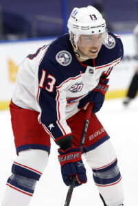 The undersized but skilled Atkinson remained a fixture in Columbus’ top six for the balance of the decade. He was a two-time All-Star, including his career-best 41-goal, 69-point effort in 2018-19 – leading the team in goals in the year they orchestrated one of the most drastic upsets in league history by sweeping the Presidents’ Trophy-winning Lightning in the first round for their first series win in franchise history. After the COVID-shortened 2021 season, Atkinson had totaled a 213-189–402 scoring line in 627 games for Columbus, still holding up as the second-leading goalscorer and point-getter in the Jackets’ record books behind Rick Nash.