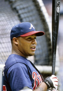 He’d start all 162 games for the Braves in 1999, playing elite defense while batting .275/.365/.483 with 26 homers and 35 doubles. The Braves made it back to the World Series after losing the NLCS in the prior two seasons. They were again knocked off by the Yankees, this time in a sweep. Jones didn’t have great playoff numbers over that stretch but remained one of the league’s best players in the regular season. He hit 36 homers in a 2000 season which Baseball Reference valued at eight wins above replacement, a career high that ranked fourth in MLB among position players.